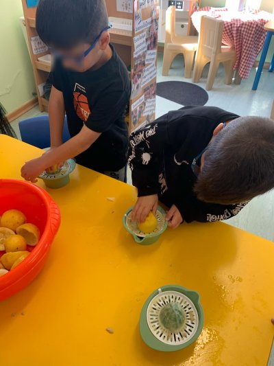 Τα παιδιά φτιάχνουν σπιτική λεμονάδα για να κεράσουν τις μανούλες που θα έρθουν στο σχολείο μας, με αφορμή τη γιορτή της μητέρας.6/5/2025