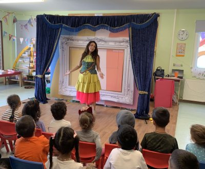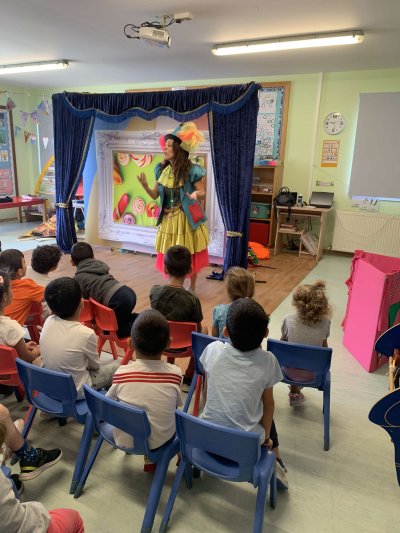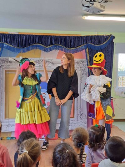 Θεατρική Παράσταση 17/10/2024 Η θεατρική ομάδα «Ομάδα Χρώματα» της Δανάης Χρίστου παρουσίασε στα παιδιά τη διαδραστική παράσταση, "ΤO XAMENO XAΜΟΓΕΛΟ ΤΟΥ ΚΛΟΟΥΝ" της Πωλίνας Θρασυβουλίδου.