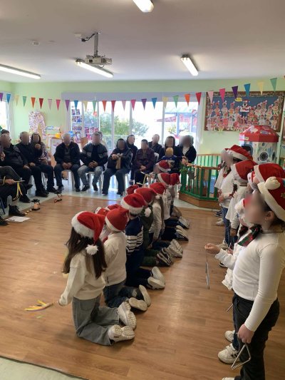 Παππούδες και γιαγιάδες παρακολουθούν τη Χριστουγεννιάτικη Γιορτή που ετοίμασαν τα παιδιά.16/12/2024