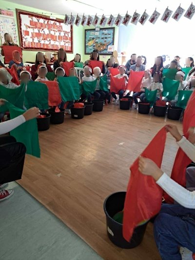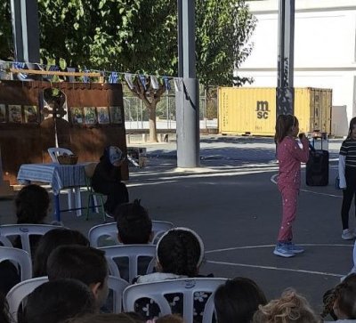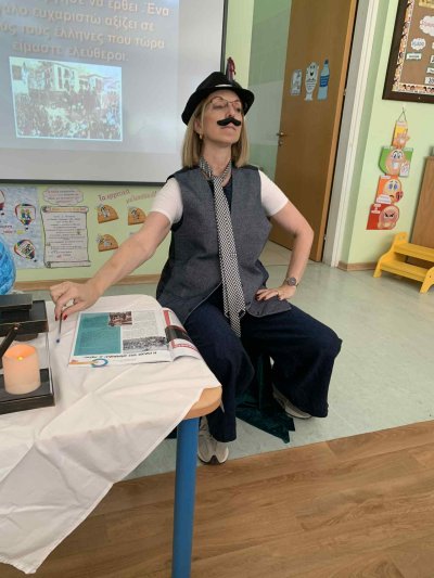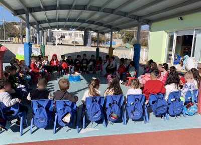 Γιορτή των Γραμμάτων και τα παιδιά παρακολουθούν θεατρική παράσταση από τις δασκάλες του σχολείου με τίτλο ΄΄Μακάρι να μπορούσα... να διαβάσω΄΄ (Γιολάντα Τσωρόνη - Γεωργιάδη).