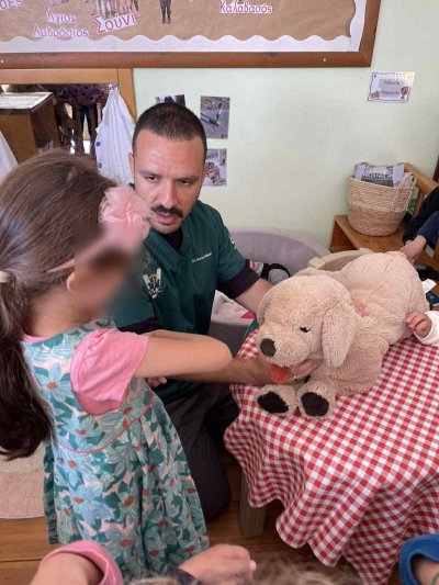 Τα παιδιά της Α1 δημιούργησαν στην τάξη τους κέντρο μάθησης «κτηνιατρείο». Στα πλαίσια στήριξης του κέντρου και εμπλουτισμού των εμπειριών των παιδιών, την Τέταρτη 19/11/2025, επισκέφθηκε το σχολείο μας ο κτηνίατρος κ. Μάριος Νικολάου. Μίλησε στα παιδιά για το επάγγελμα του κτηνίατρου. Τους γνώρισε τον σκυλάκο φίλο του και έπαιξε μαζί τους μέσα στο κέντρο μάθησης - παιχνίδι ρόλων.