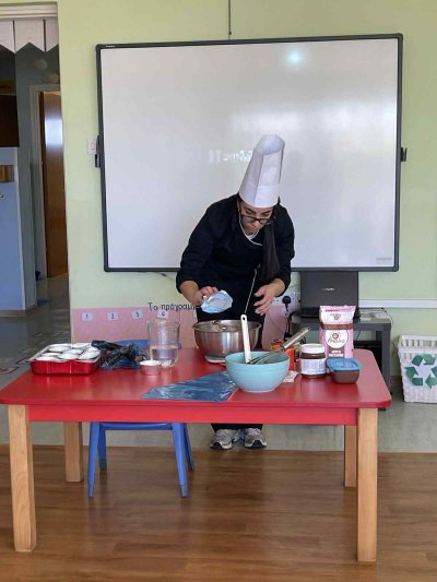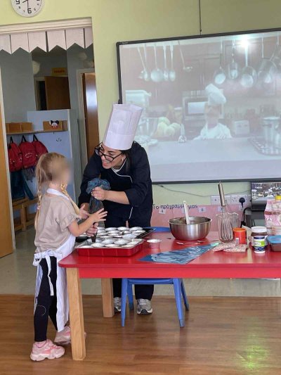 31/10/2025 Η Ζαχαροπλάστης Κωνσταντίνα Φιλίππου επισκέφθηκε το σχολείο μας και μύησε τα παιδιά στα μυστικά της ζαχαροπλαστικής. Οι μαθητές της Α1 είχαν την ευκαιρία να φτιάξουν τα δικά τους capcakes και να γνωρίσουν από κοντά το επάγγελμα του ζαχαροπλάστη. Η δράση αυτή έγινε στα πλαίσια της δημιουργίας κέντρου μάθησης στην τάξη των παιδιών με θέμα Ζαχαροπλαστείο.