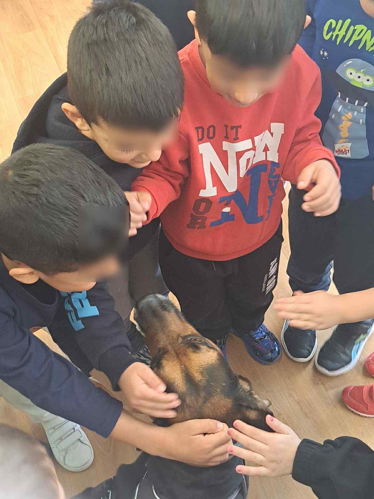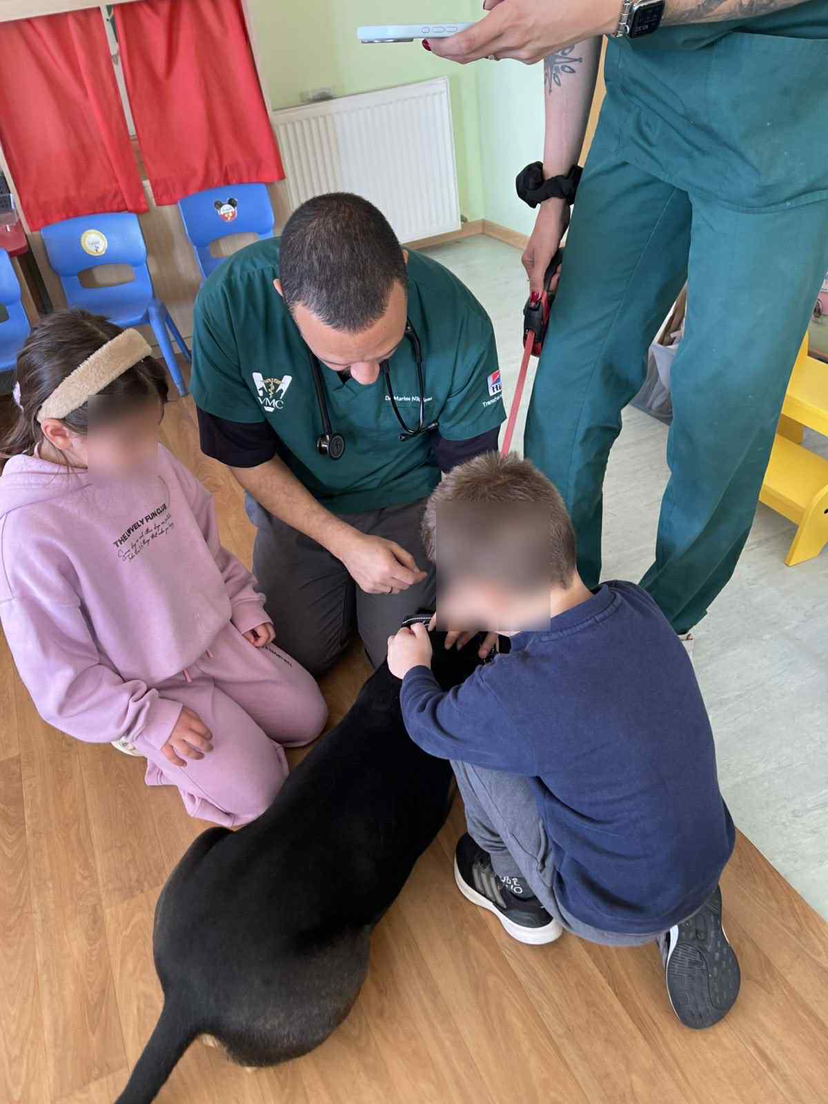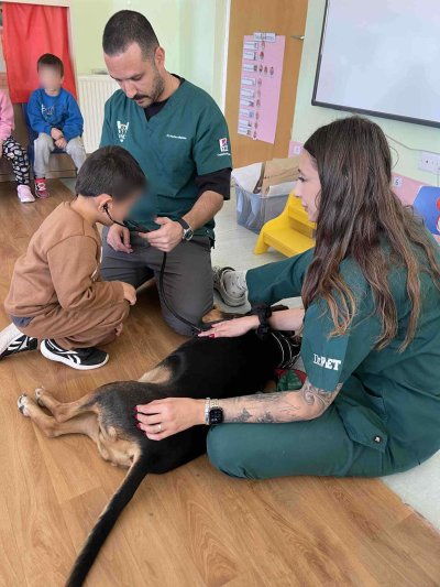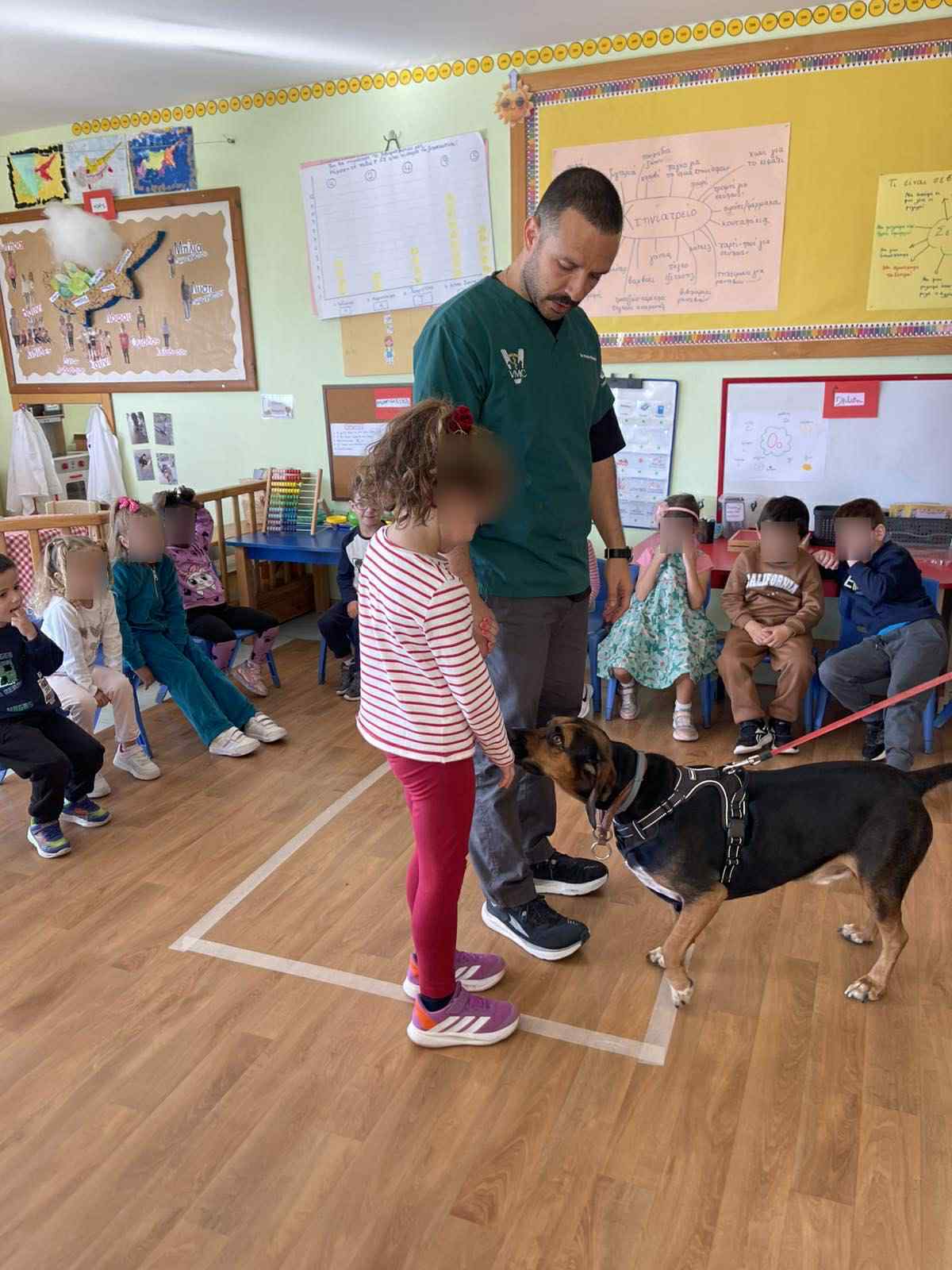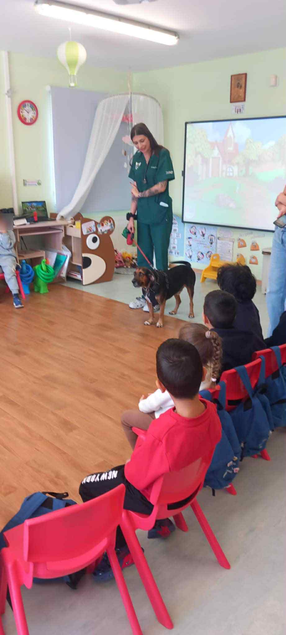 Τα παιδιά της Α2 γνωρίζουν το σκυλάκο, μαθαίνουν για το επάγγελμα του κτηνίατρου και για τη φροντίδα των κατοικίδιων.